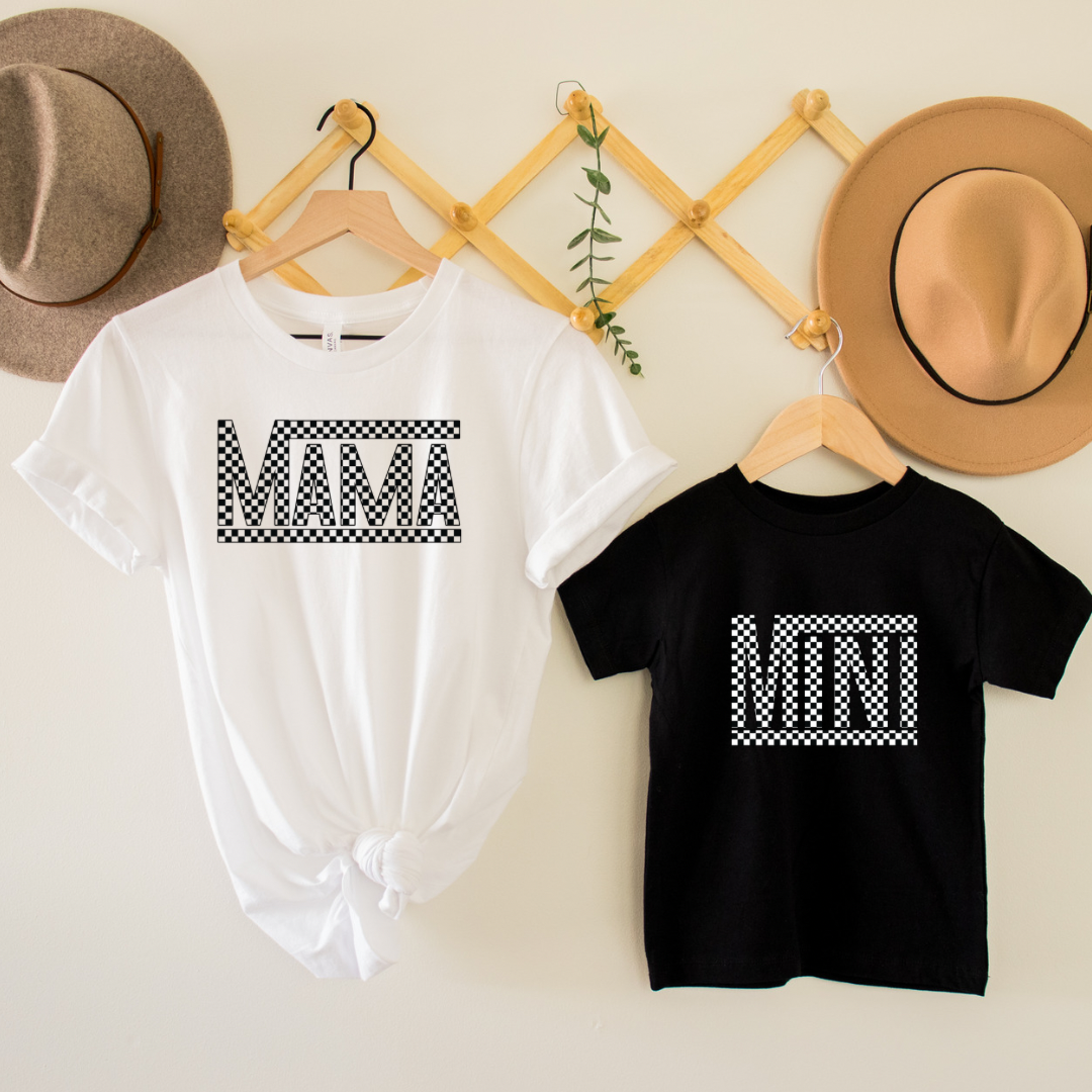 Mommy and Me, kids available in black color only, adults available in black and white only
