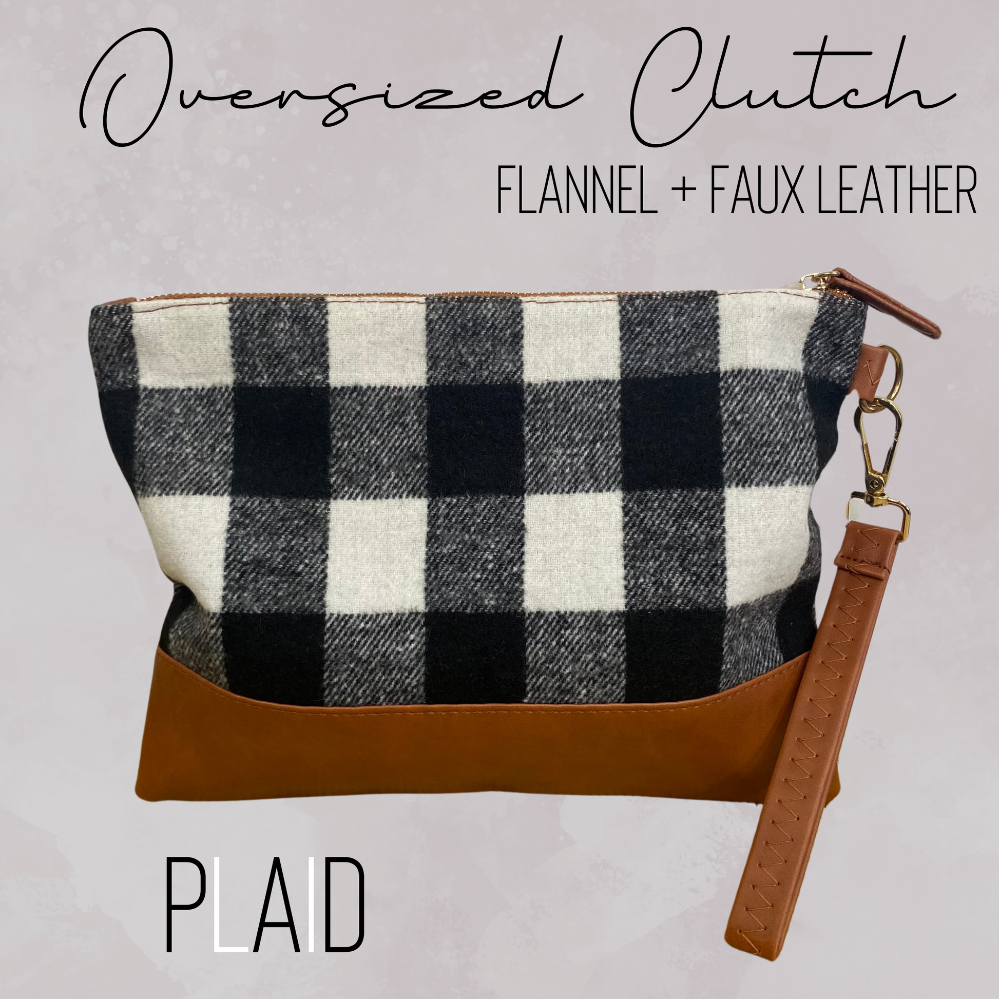 Clutch - Oversized Canvas & Faux Leather - Plaid