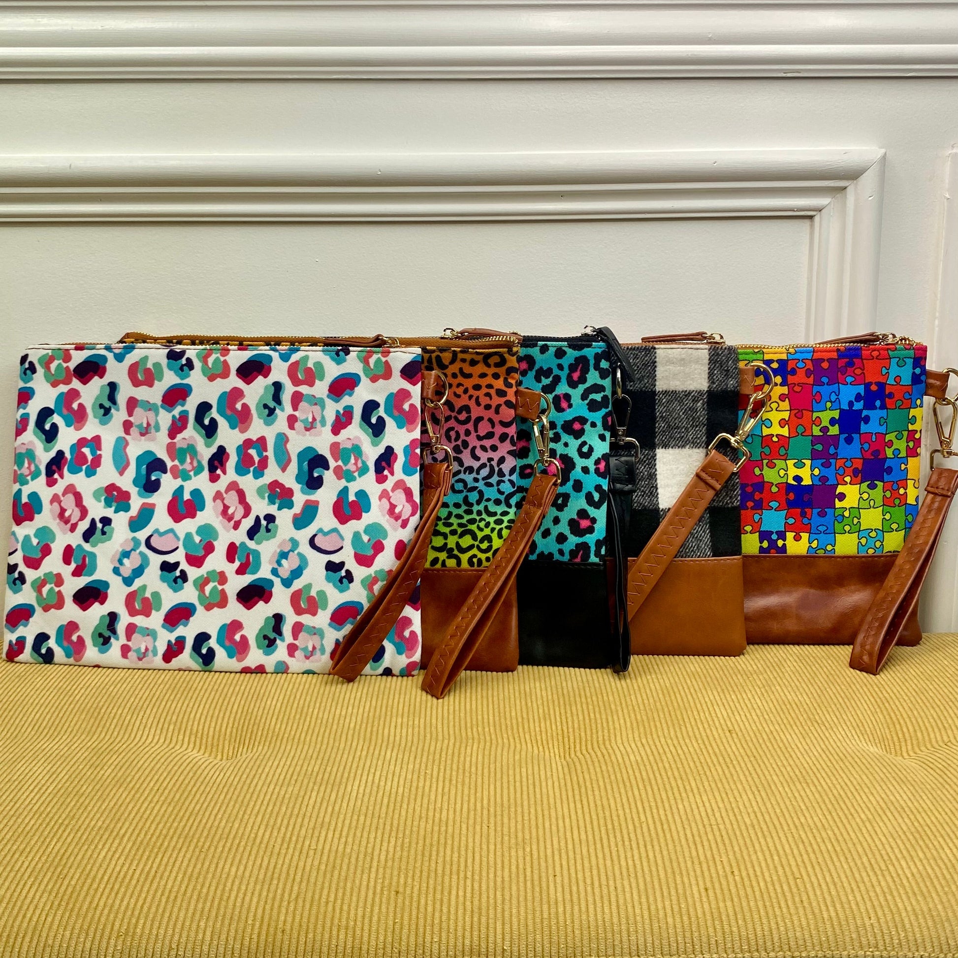 - Zipper Closure, Faux Leather Wrist Loop