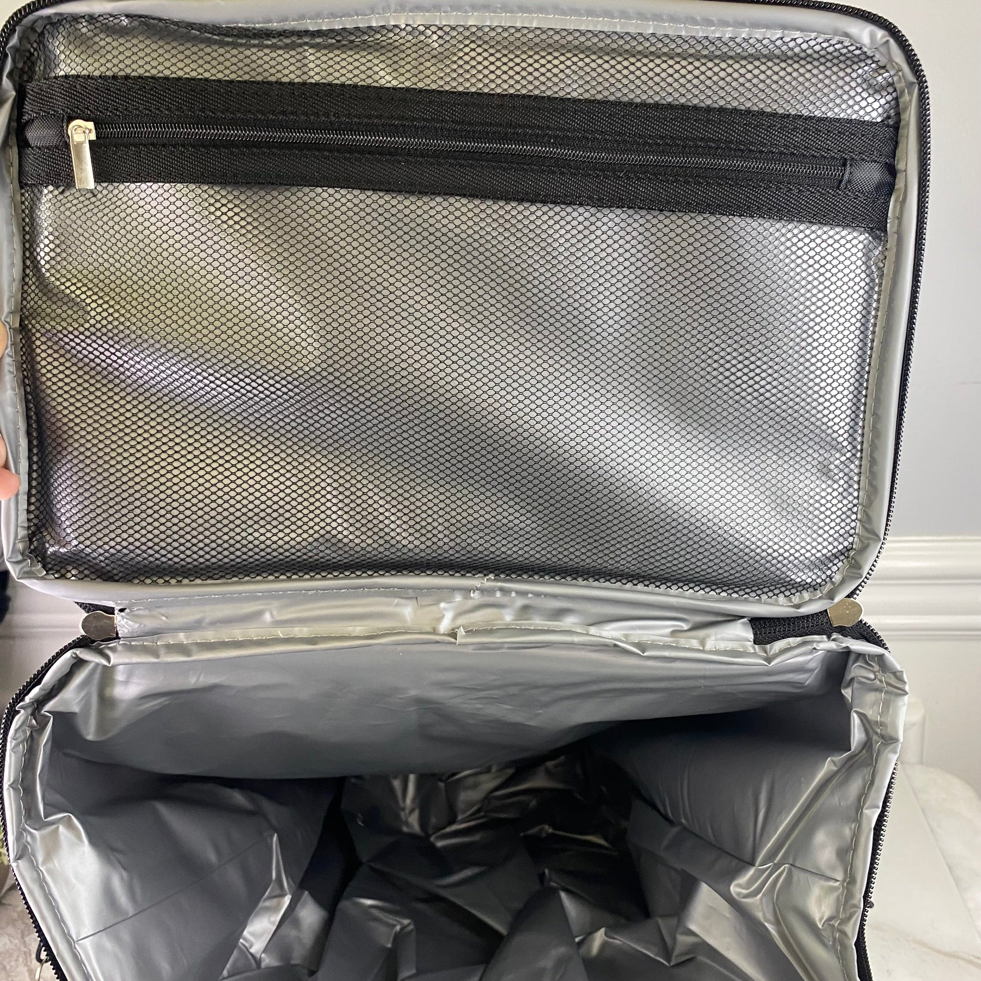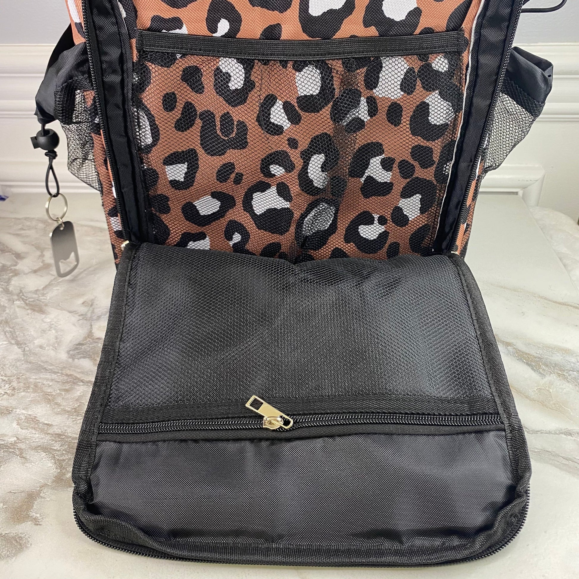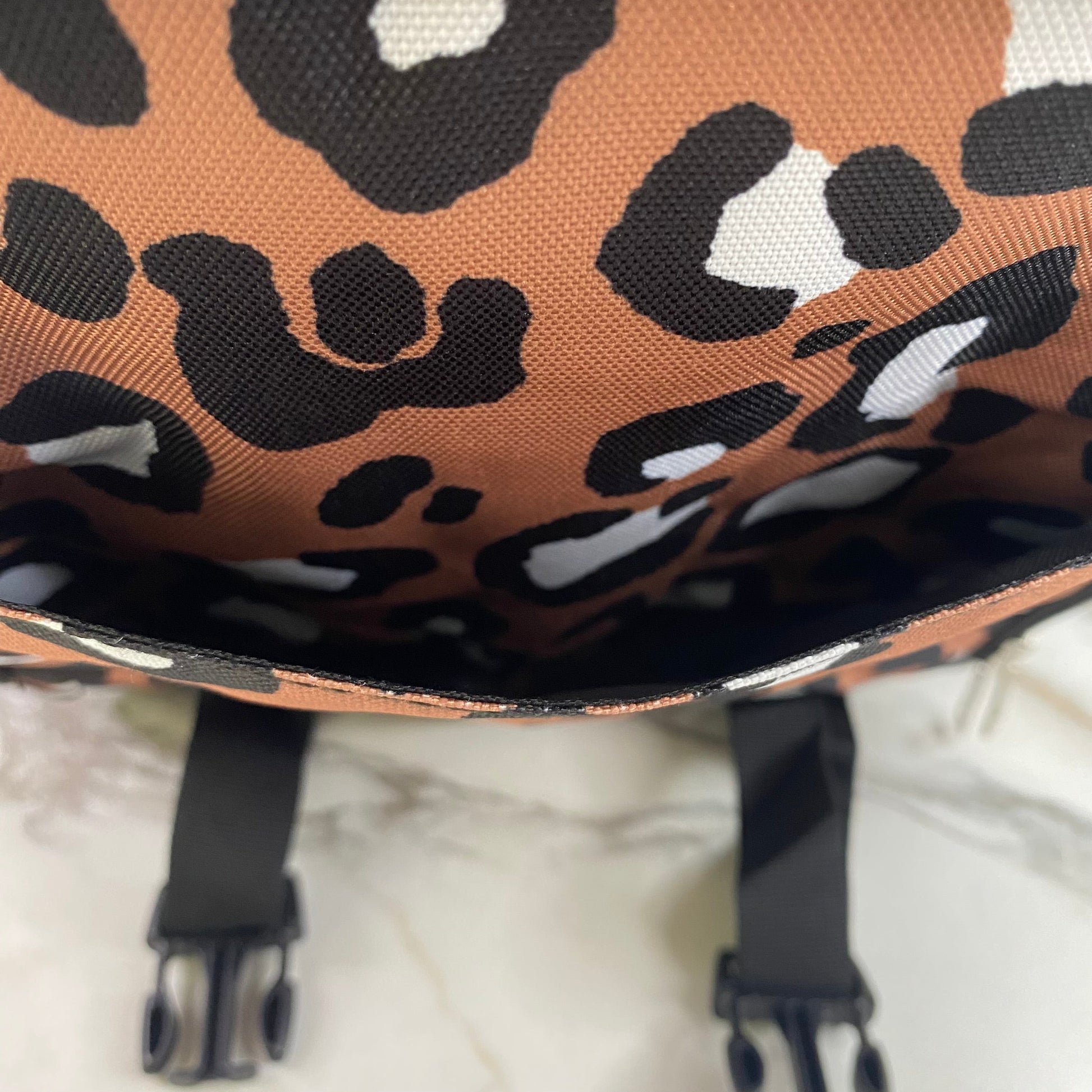 - Double zipper for main large compartment. Front zippered compartment and buckles front compartment.