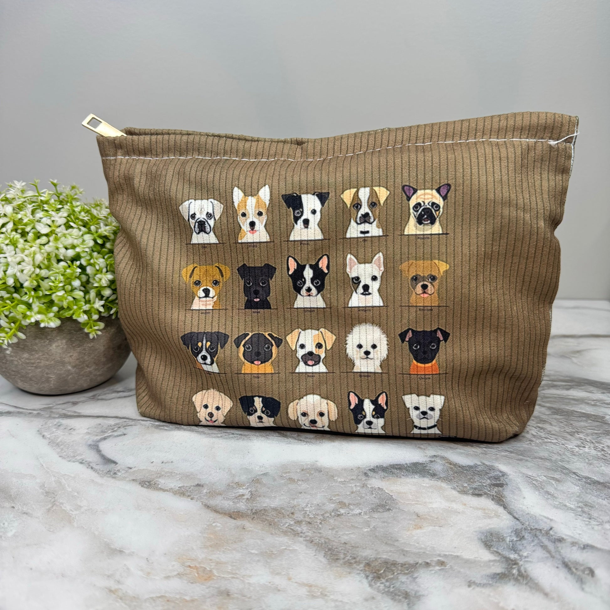 Corduroy Zip Pouch - Puppies Dog