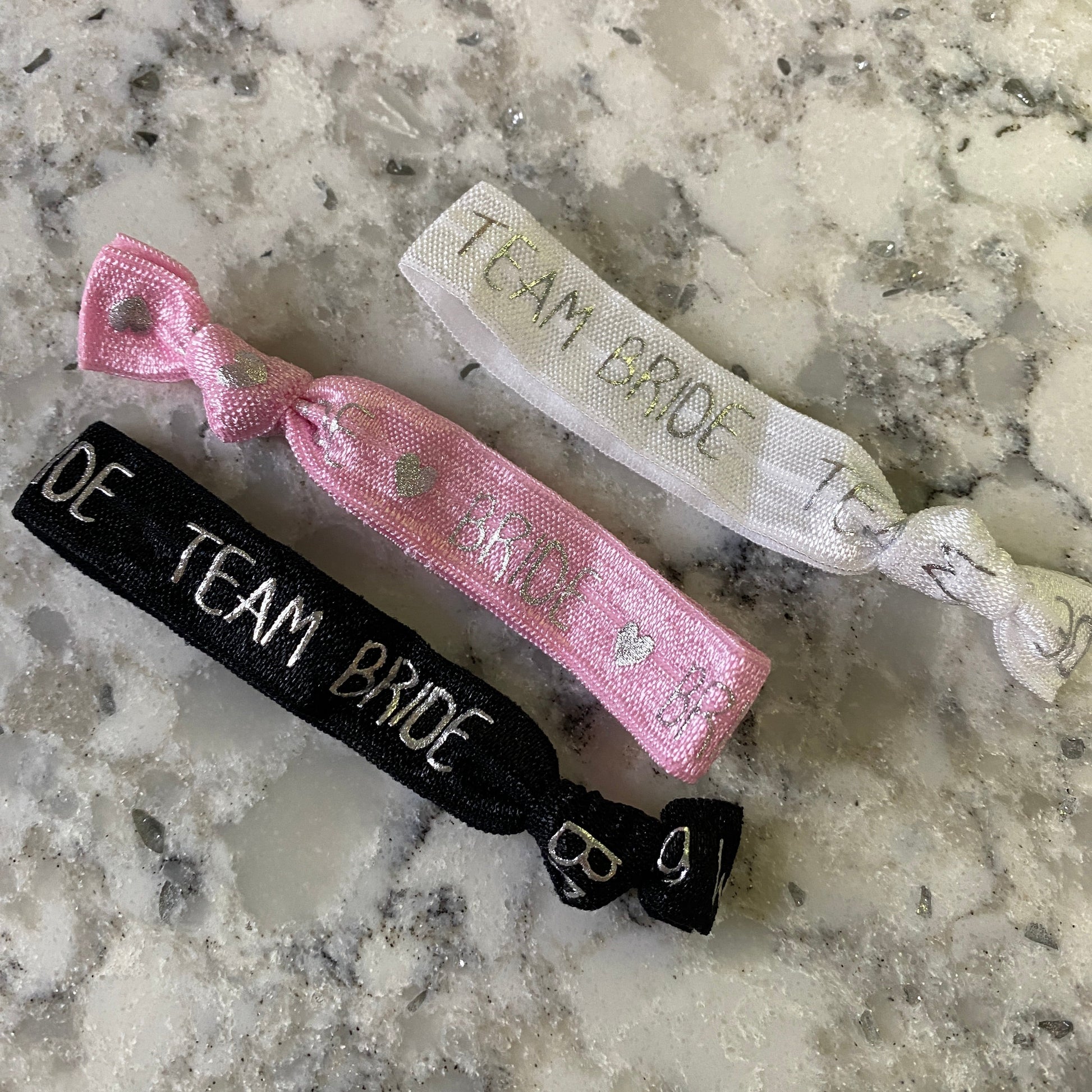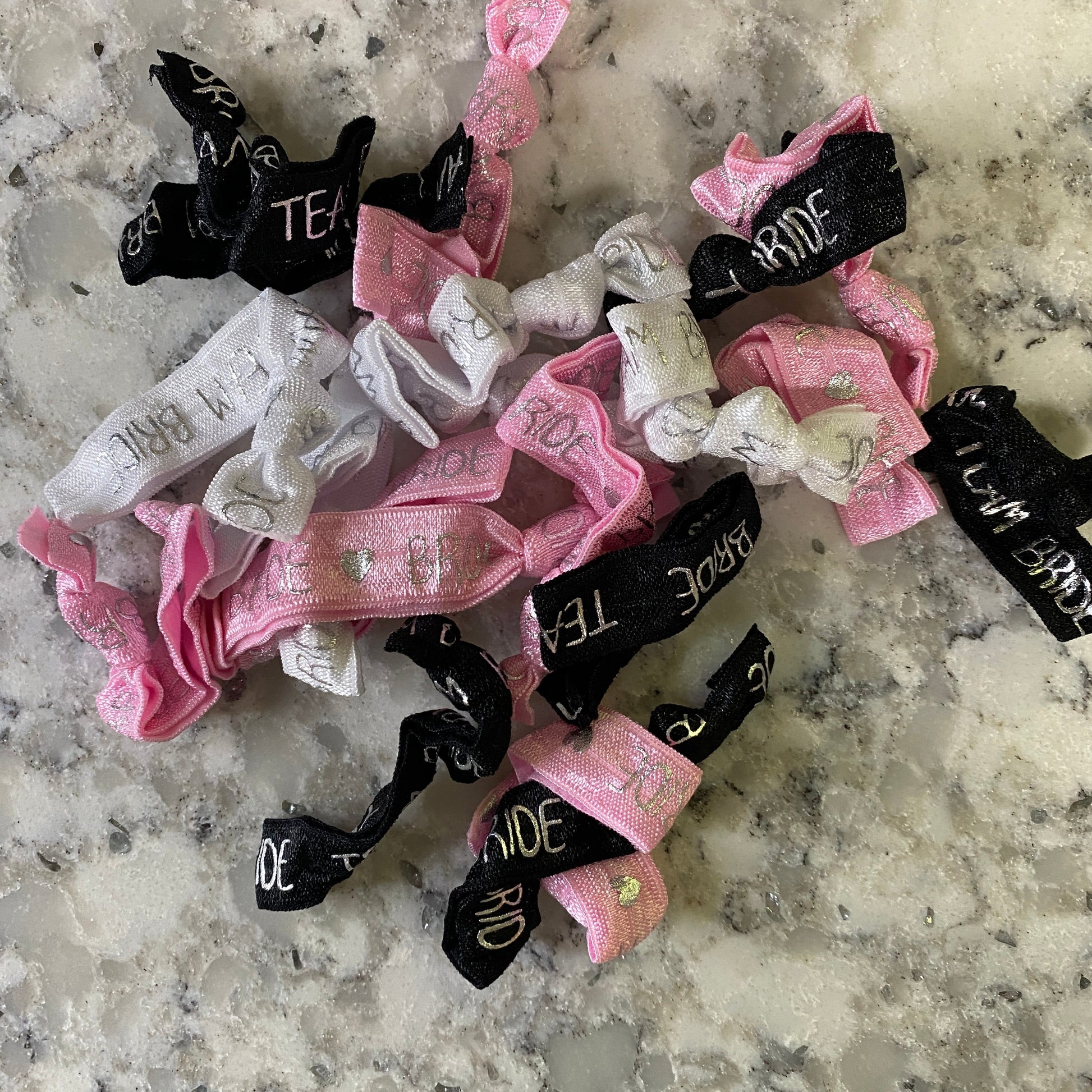 Stretchy fold over elastic. Perfect for comfy ponytails and buns! Also looks cute on your wrist.