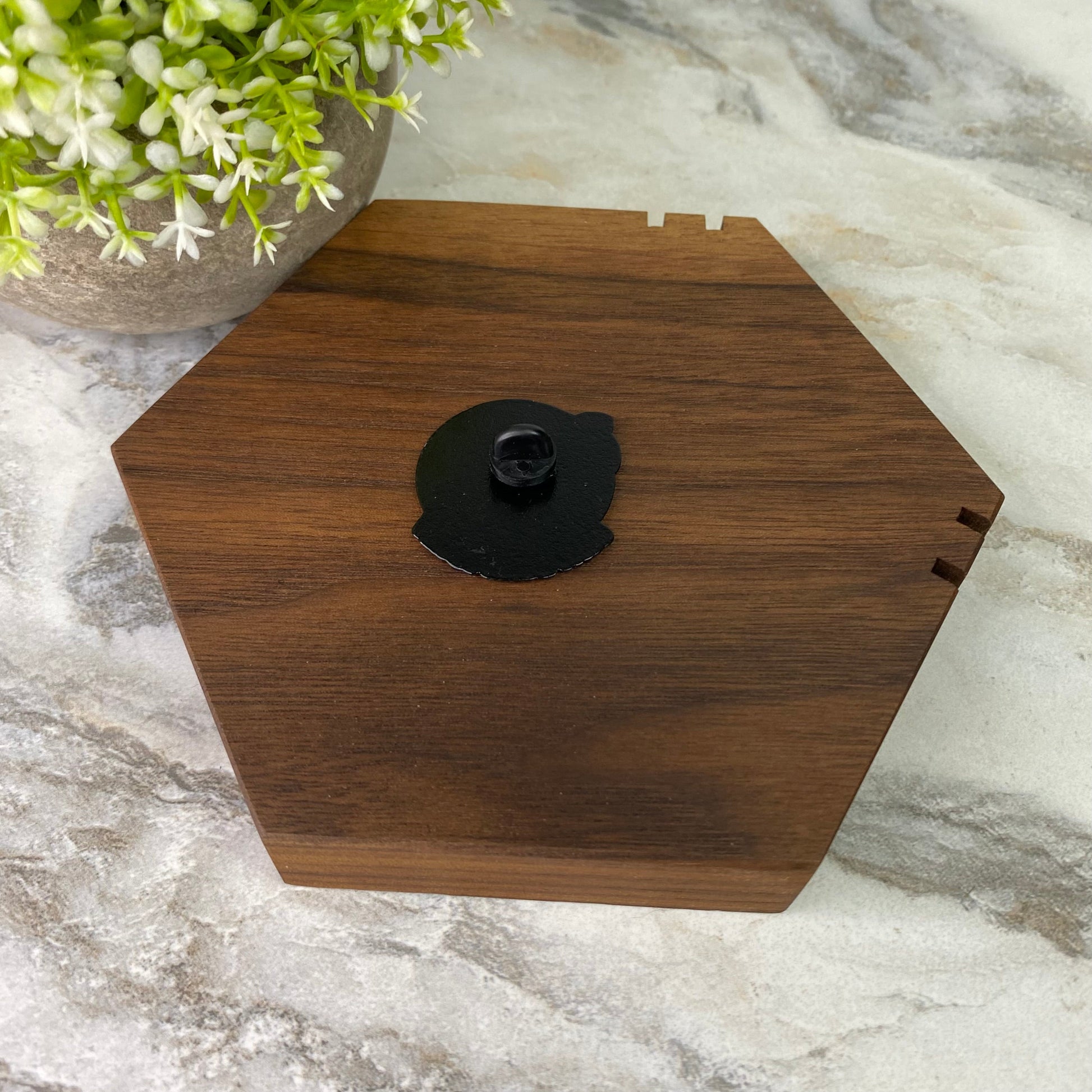 Metal pin, rubber backing.
