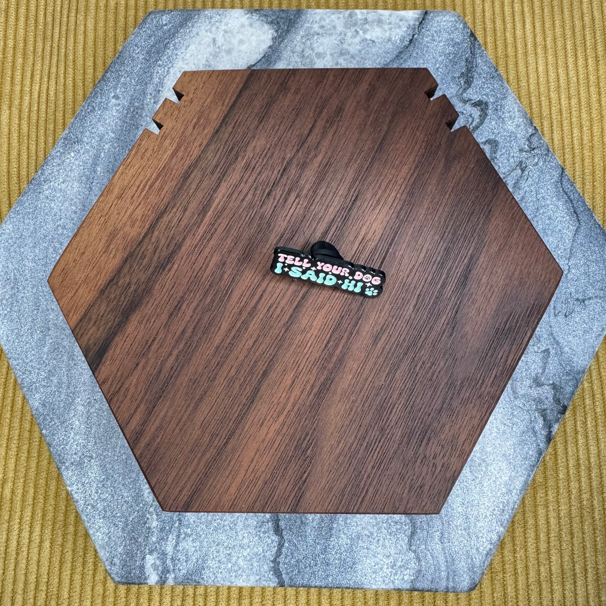 Metal pin, rubber backing.