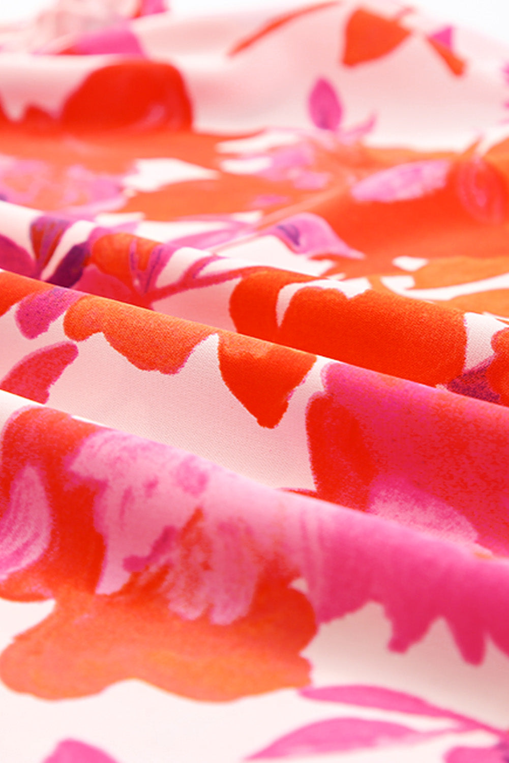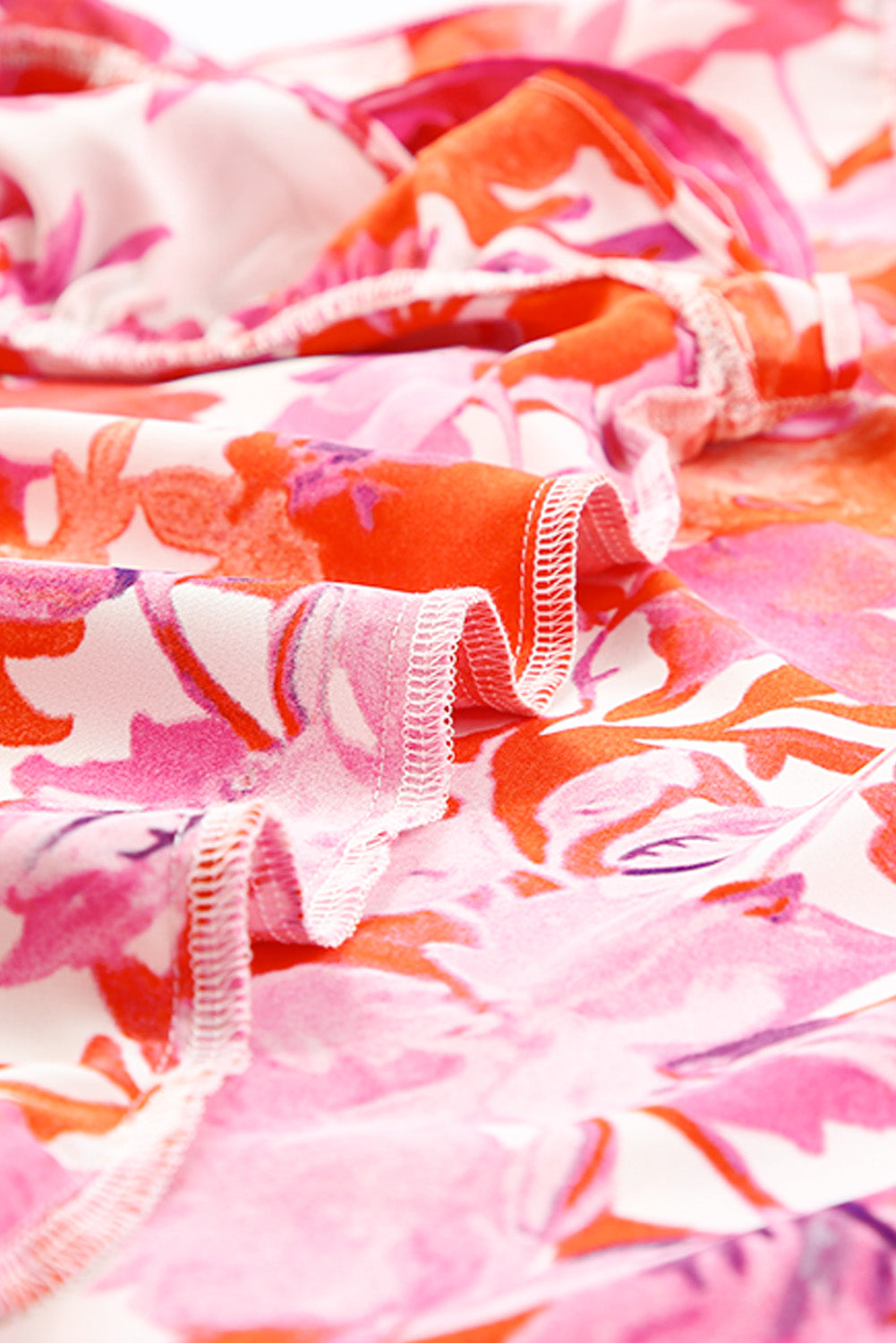 Plus Size Floral Flutter Sleeve Round Neck Blouse