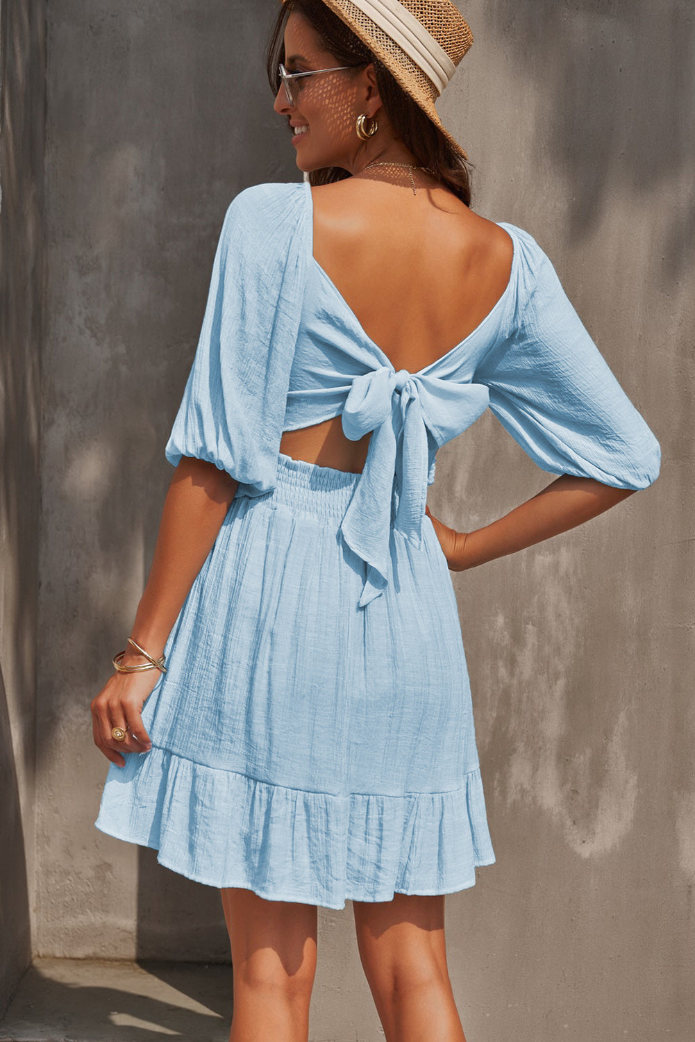 Tie-Back Ruffled Hem Square Neck Mini Dress